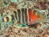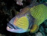 Within a few minutes we encountered a Titan Triggerfish, which sometimes can be aggressive. This one was relaxed and ignored us. We found a sea anemone with three Pink Anemonefish and spend some time watching these actieve little fish playing hide and seek. We swam into a group of hundreds of Yellowtail Barracuda, which as impressive to see.