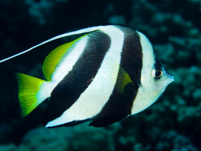 Pennant butterflyfish, Poor man's moorish idol, Schooling bannerfish, Schooling coachman.