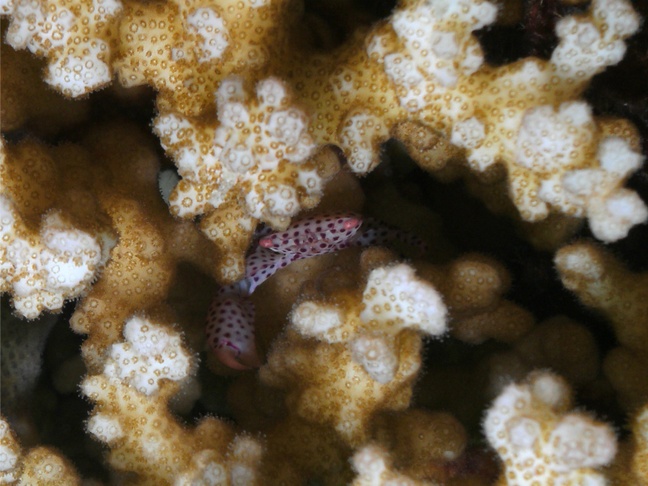 Red spotted coral crab, Red-spotted guard crab.