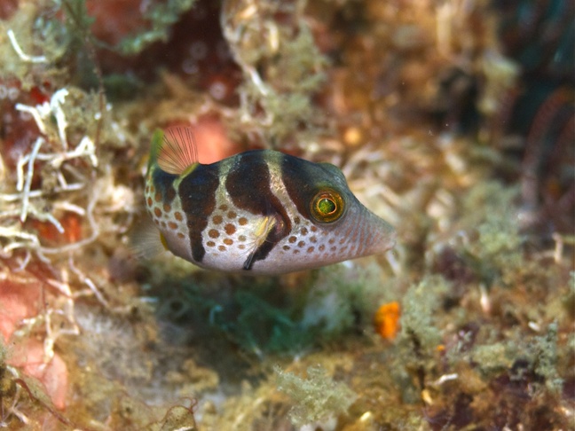 Banded toby, Black saddled toby, Model toby, Saddled pufferfish, Valentinni's sharpnose puffer.
