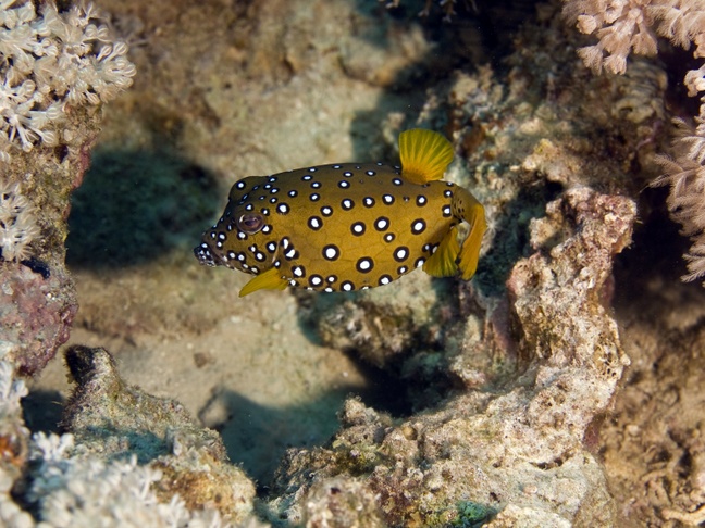 Black-spotted boxfish, Blue-spotted boxfish, Cube trunkfish, Cubical boxfish, Polkadot boxfish, Spotted box fish.